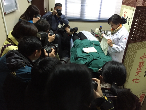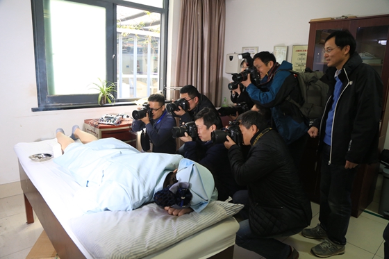 集体照拍摄结束后,35位摄影师分5组对9个拍摄点进行轮流拍摄。烟雾缭绕的灸法;一头白发却神采奕奕的老中医;坚守生命第一线的急救场景;熬制浓缩精华的膏方制作;温馨关怀优质服务的礼仪形象展示;忙碌而充实的病区日常工作;无影灯下专注的神情,一张张、一幕幕叙写着医院文化的独特魅力。