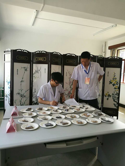 按惯例,本次考核为“五站式”考核,分为中药辨识、病史采集与重点体检、病历书写、病例分析、临床操作五项内容。今年“临床操作”中的基本技能为心肺复苏术、独取寸口脉诊法、留置导尿术(男性)、灸法(雀啄灸与回旋灸)四选一;中医内科专业技能为腹腔穿刺术、腰椎穿刺术、气管插管术三选一;针灸科专业技能为捻转行针法(平补平泻)、拔罐手法(拔罐、走罐、闪罐)、推拿手法(扌袞 法、捏法、摩法、一指禅法)八选一。与往年不同的是,今年中药辨识及病例分析每半天一套题目均在考前拆封,且中药饮片是由省中医继教中心统一邮寄到各考点,充分体现了考试的公平性和严肃性;而技能操作考核项目按以上各项目序号轮转,保证每一个项目都能被考到。除病史采集与重点体检、病历书写外,其他三站都集中在新临床技能培训中心完成,有效地解决了因考生数增多的时间安排问题,使时间节点安排更加紧凑。