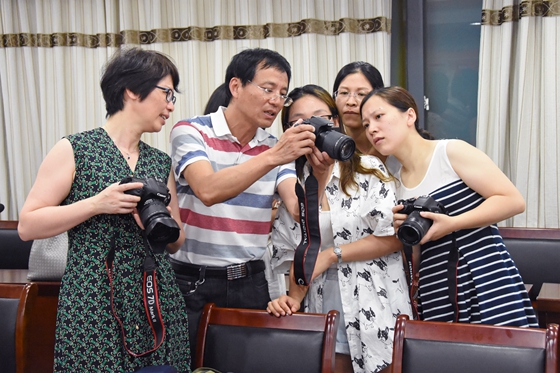 凌会长在结束了基本的理论讲解之后,还手把手地指导新成员使用相机,大家学习的兴致很高。最后,凌会长还为大家简单示范了一下修图软件,一张普普通通的相片,在他的修饰下显的别有韵味!