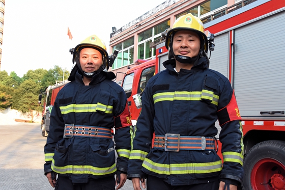 据陶队长介绍,消防服分两种,一种是黑色的,是消防员在灭火时穿的,一种是橙色的,是消防员在救助遭遇车祸或自然灾害时穿的。我院参加演习的人员亲自穿上了黑色的消防服,不一会儿便满头大汗、气喘吁吁。“太难受了!”来自信息科的边杭锋脱下消防服后感叹道,消防官兵每次穿着这么厚重的服装出去参与救援是多么辛苦。