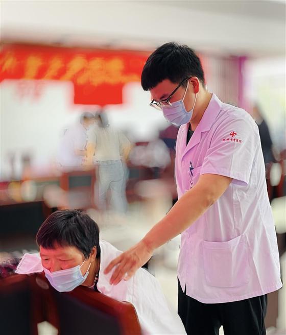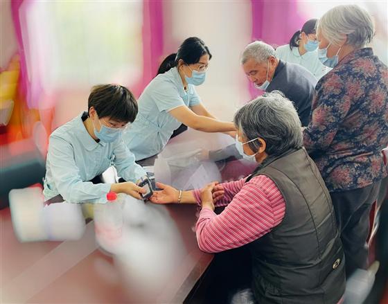 面对前来咨询的村民们,医生耐心细致地询问病情,为高血糖、高血压老人及帕金森病患者提供健康指导,针灸、推拿、拔罐等项目深受青睐。义诊团队为村民测量血糖、血压,前来体验的村民络绎不绝。