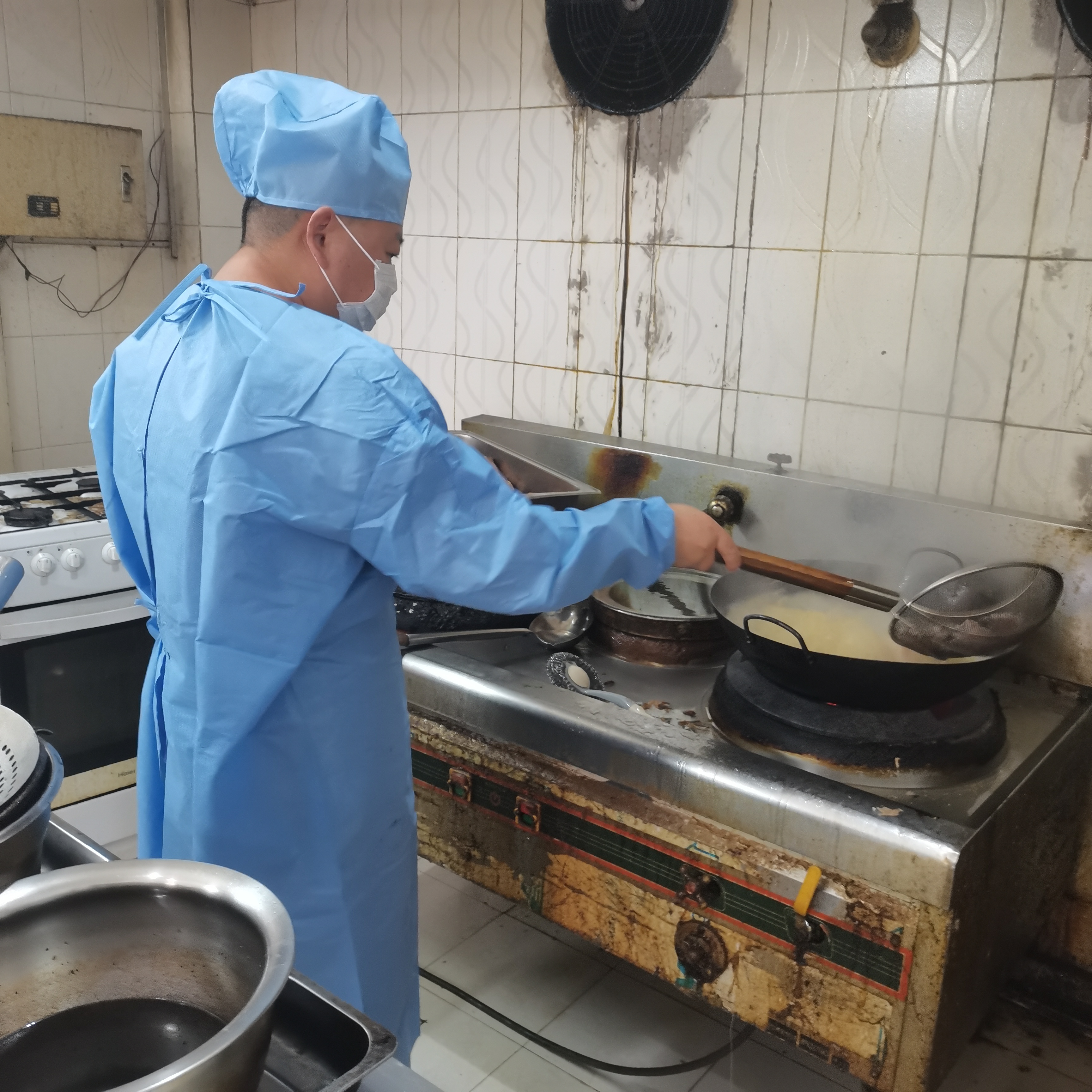 2022年抵达马里时,正逢新冠疫情形势严峻,对后勤保障工作要求极高。朱伟明和厨师队友每天对食堂大厅、后厨和菜品物资运送车辆等消杀处理,保证食品卫生安全。在马里首次设立“5S”管理员制度,达到安全、卫生的食品质量要求。