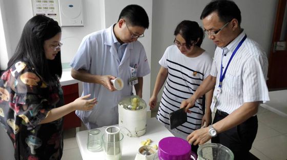 随着头伏的临近,冬病夏治的脚步也悄然而至,前期准备工作有条不紊的筹备着。生姜大蒜是其中两种药材,需要经过去皮、榨汁、过滤等程序,收集其汁水方能入药。由于药物用量比较大,生姜大蒜各有30斤需要徒手进行处理。大家围着桌子,有的徒手剥蒜,不一会整张桌子都是白茫茫的一片大蒜皮;有的用丝瓜刨将生姜去皮,丝瓜刨数量有限,最后连小刀剪刀都用上了;里屋用榨汁机将去皮后的生姜大蒜分别榨汁过滤,大家干劲十足。由于设备限制,榨汁过滤程序转战至食堂后厨,多个榨汁机同时运作加快效率,最后用干净洁白的纱布进行过滤。看着一滴滴的汁水汇集在一个个玻璃瓶里,大家的脸上流淌着汗水,洋溢着微笑。