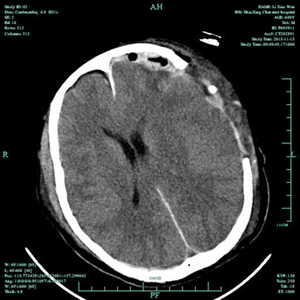 2015年11月12日,49岁的李先生在工地干活时不慎从高处坠落,致头部受伤,当时情况危急,由120送至我院,查头颅CT提示颅内广泛硬膜下出血、脑挫伤、脑疝形成,属于重度颅脑损伤,生命危急。我院神经外科王风永主任当机立断,在全麻下给患者施行左侧额颞顶硬膜下血肿清除+去颅骨瓣减压术,手术顺利。术后在ICU及十二病区全体医护人员的精心治疗和护理下,患者逐渐康复,语言表达、肢体活动、生活自理方面均恢复良好,术后一月顺利出院,并建议患者在家修养一段时间后,尽早返院再行颅骨缺损修补手术。