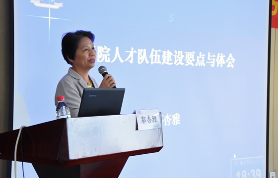 为加强医院人才队伍建设,提高干部管理水平和综合素质,10月12日下午,我院在七楼报告厅举办2016年度秋季干部读书会,邀请浙江大学医学院附属邵逸夫医院院长助理郭杏雅作“医院人才队伍建设要点与体会”专题讲座。医院领导班子成员、全体中层干部、共青妇团及民主党派负责人、诊疗组长、责任组长(护理)、班组长、“优才工程”培养对象等140余人参加。读书会由党委书记张建荣主持。