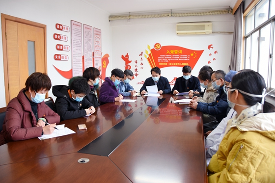会后,临时支部召开支委会会议,支委进行分工并商讨支部工作计划。随即召开了第一次支部党员大会,组织学习中共绍兴市委《关于深入贯彻落实习近平总书记重要指示和中央、省委文件精神切实加强党的领导为打赢疫情防控阻击战提供坚强政治保证的通知》等文件。